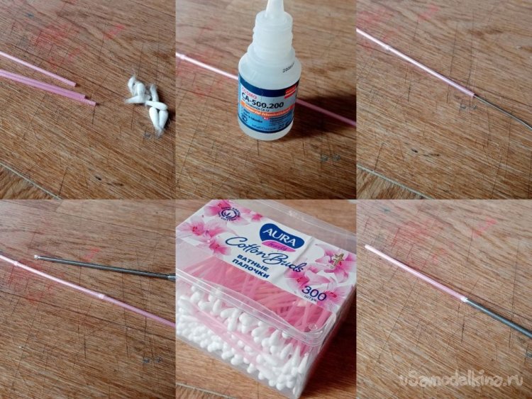 Приклеиваю ушки к кончику крыла, используя циакрин укрепленный содой.