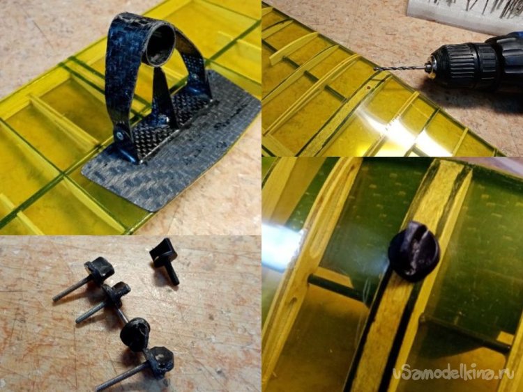 После застывания смолы обрабатываю головки болтиков. Можно крепить крыло.