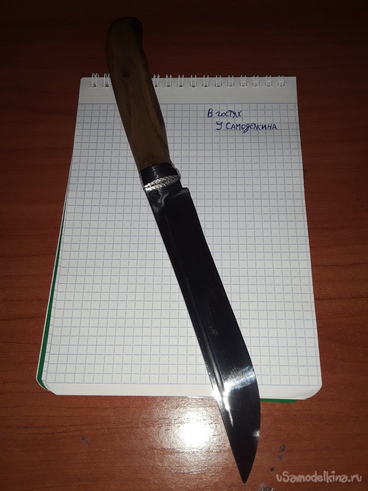 Ну как то так все что знаю и хотел вам рассказать и показать все выполнил в основном результатом доволен. Нож передал в руки хозяина и предупредил что он хорошо режет так же быстро ржавеет, но если вовремя ухаживать блестеть будет долго. В общем пора прощаться всем кто дочитал до конца желаю мира и добра в ваши дома всем удачи и до новых встреч на нашем сайте в гостях у Самоделкина. https://youtu.be/D-_Q0EXhRjQ