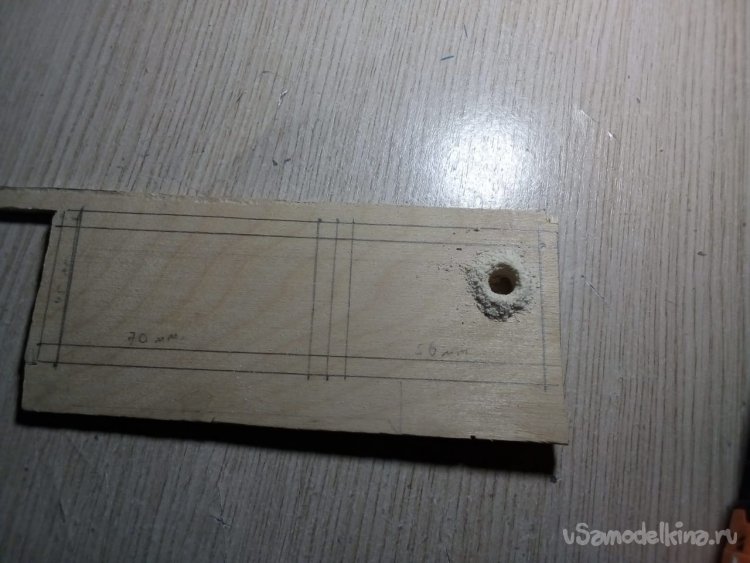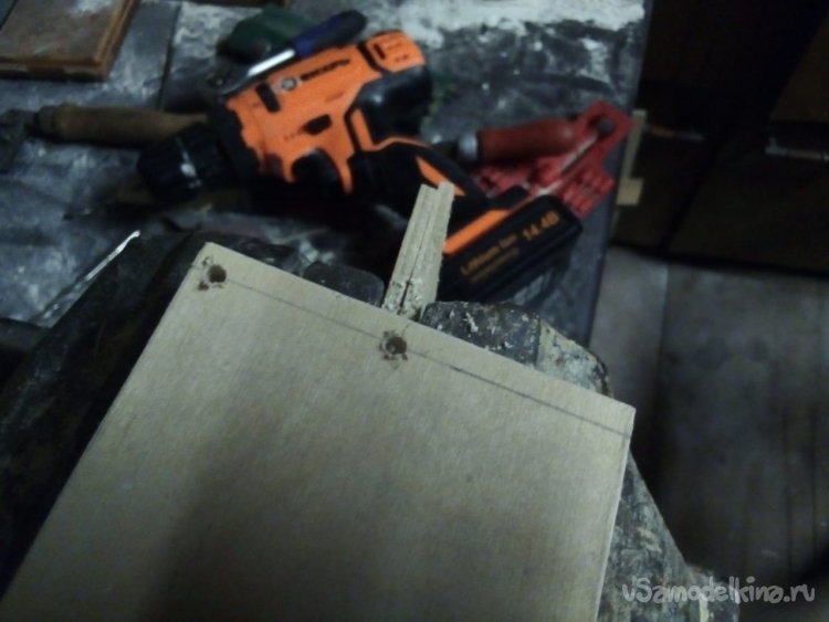 18. Размечаем карандашом отверстия, идущие напротив друг к другу, которые предназначены под держатели. (То, на каком расстоянии они будут находиться зависит от паяльника.)