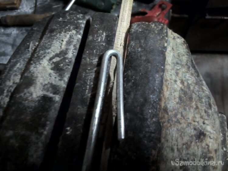 16. Алюминиевую проволоку размечаем и отрезаем в нужный размер. После чего гнём до нужной формы. Один держатель должен стоять немного ниже, чем второй. Так как если поставить хотя бы немного выше, то например кислота будет стекать на жало паяльника.