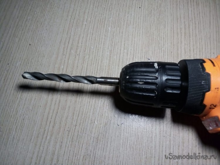 19. Измеряем штангенциркулем диаметр алюминиевой проволоки, подбираем нужное сверло и сверлим. Лучше выбрать сверло немного меньше диаметра проволоки, для более лучшей устойчивости.