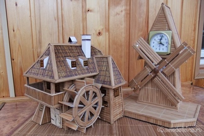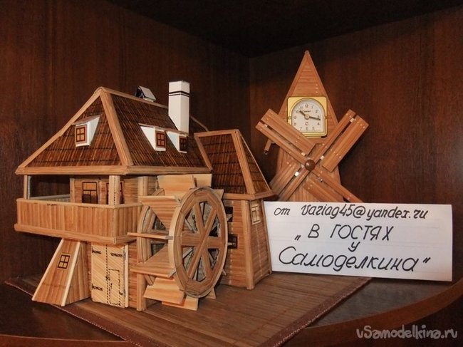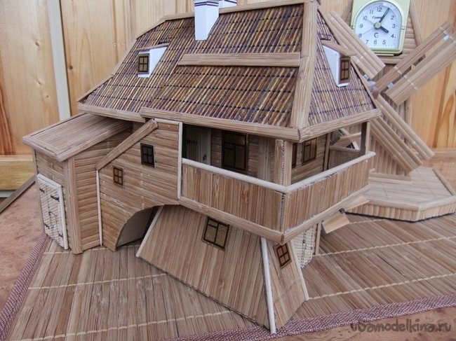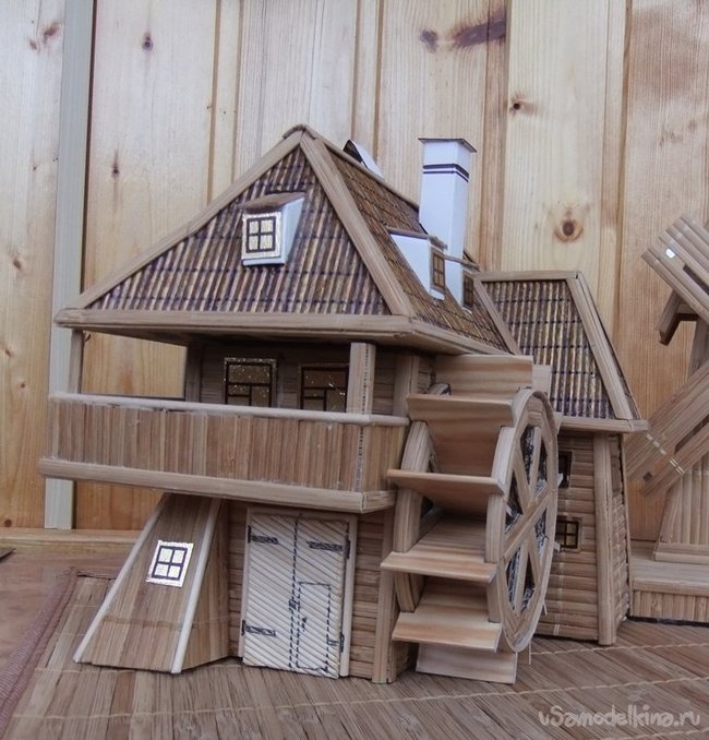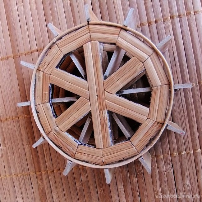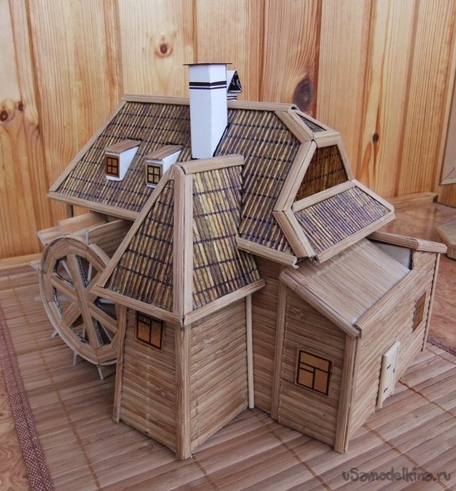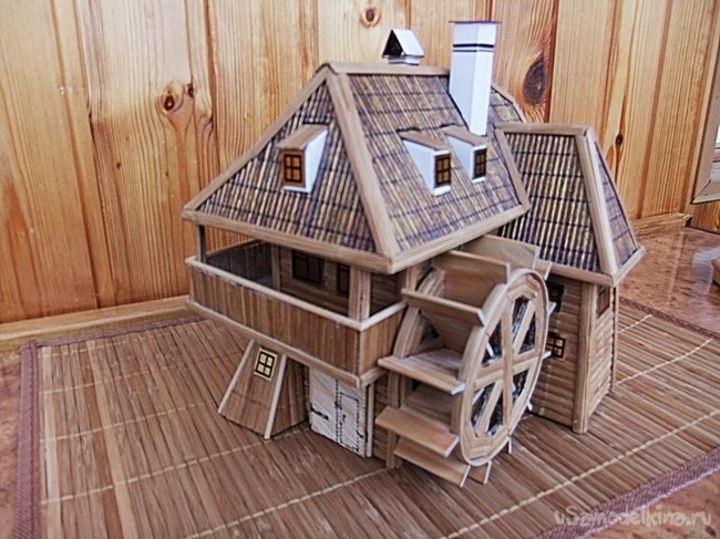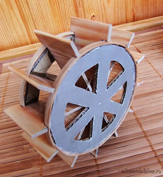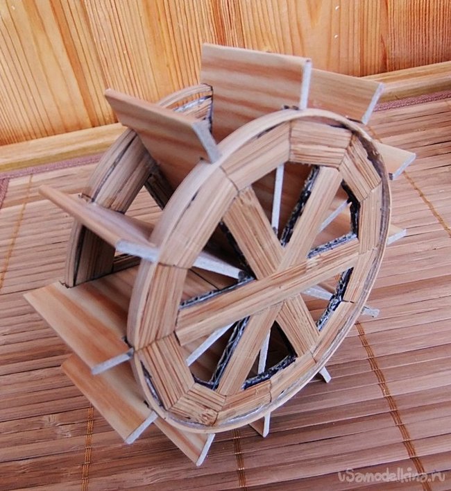Заключительным элементом и ключевым,определяющим все назначение данного здания - является колесо водяной мельницы. На фотографиях четко видно, как его изготовить.