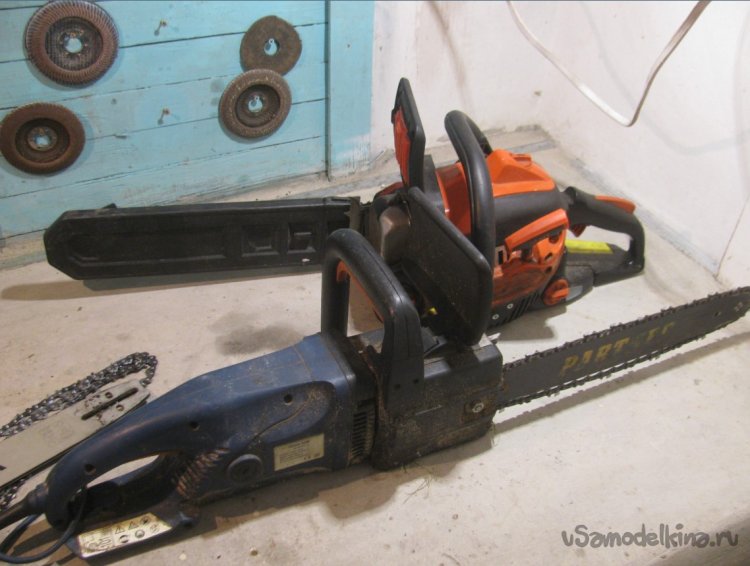 Так вот, двухкиловаттная электрическая их всех обходит уж большо заметно. Да и шина на ней изначально длиннее ставится, что, как-бы намекает... Они взаимозаменяемые все. Как-то не было штилевской острой цепи, а надо было на выезде пильнуть. Перекинул с электрической шину с цепью. ...Еле-еле отпилил то, что надо - задыхается с длинной шиной... А электрическая не чувствует...