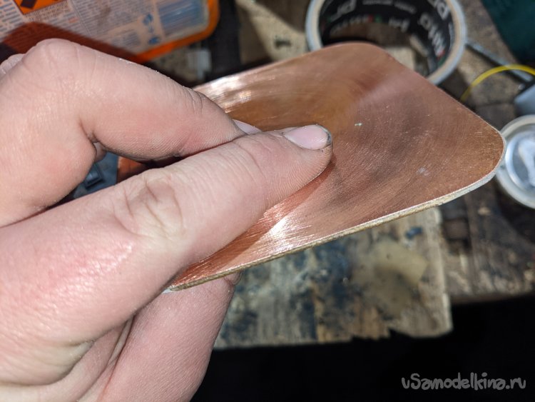 После обламывания остаётся много изолок из стекла, которые торчат в разные стороны и мечтают воткнулся в палец, их в обязательном порядке нужно зашлифовать. Ещё если хочется, можно немного отшлифовать медь, она будет снаружи, но сзади.