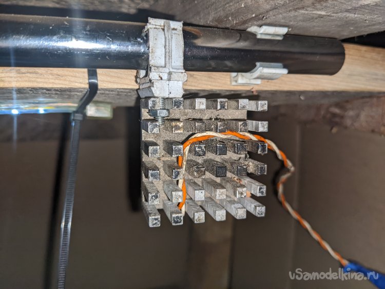 К радиатору на болт М4 я прикрутил клипсу чтобы можно было повесить на трубку (клипса и трубка диаметром 16 мм).
