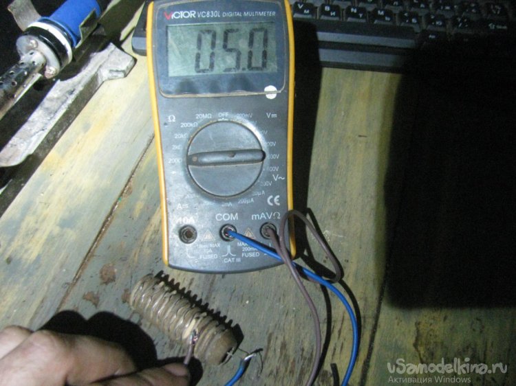 Сделал более надежный резистор, намотав проволоку на кусок керамики от старого резистора жигулевской печки. Новый резистор имеет сопротивление 5 Ом и прекрасно отводит тепло.