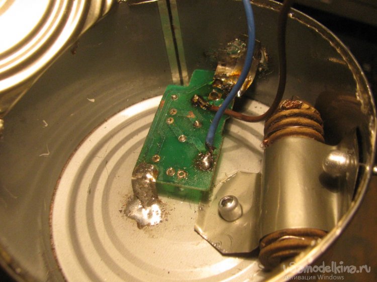 Прикрепил резистор куском жести на заклепки. Что касается платы, я ее припаял через кусочки жести к корпусу банки. Припаивал к «минусовым» выводам. В итоге все держится вполне надежно. Саму крышку можно потом тоже  в одном месте припаять.