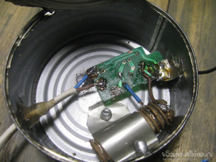 Корпусом выступила консервная банка, она хороша тем, что в случае чего нечему гореть, да и теплоту такой корпус хорошо рассеивает.
