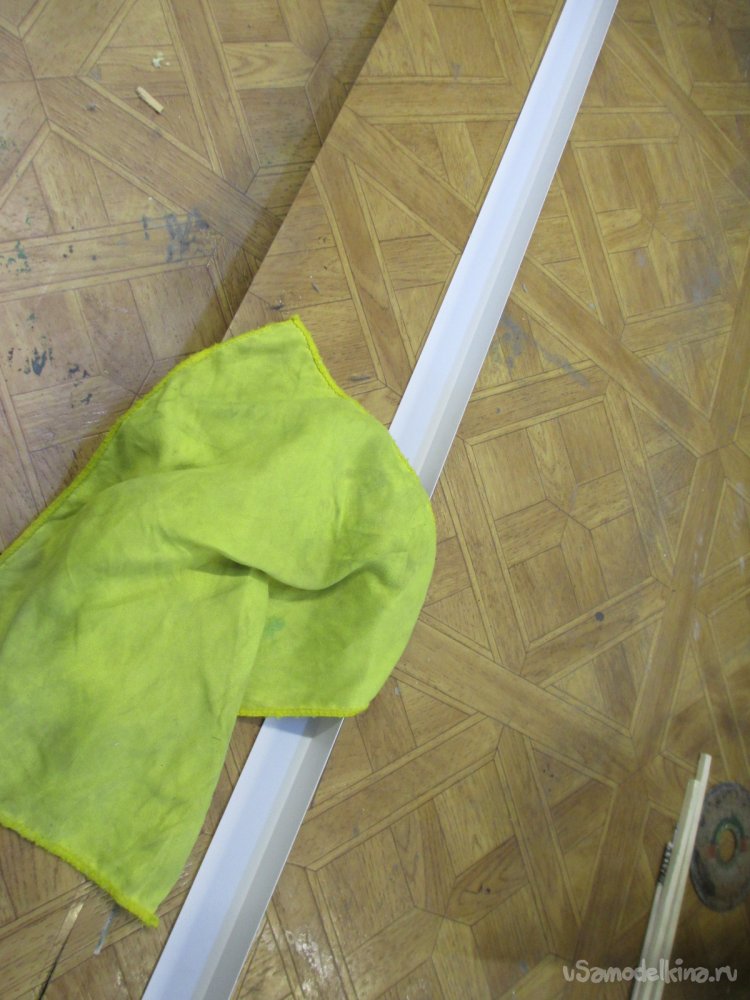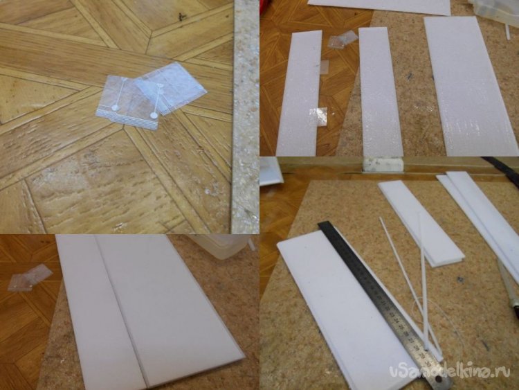 Нужно провести управление от сервопривода на руль направления. Для этой цели изготовил партию кабанчиков из строительного пластикового профиля. Протираю влажной тряпочкой от пыли, он готов к нарезке.