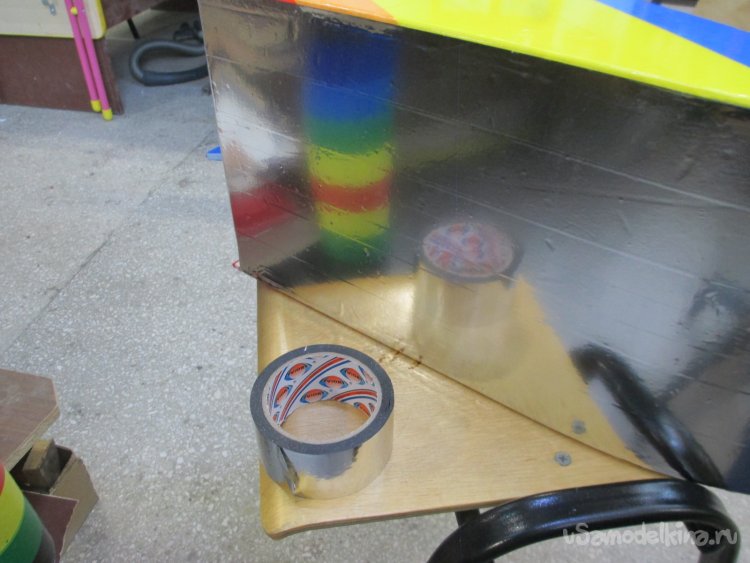 Настал черед днища. Его оклеиваю простым алюминиевом сантехническим скотчем. Немого прочнее обычного будет.