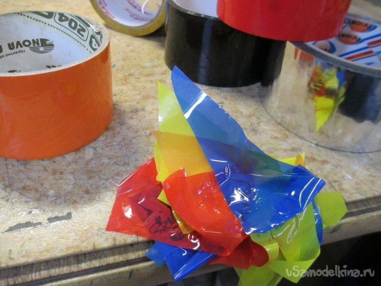 Боковую поверхность оклеиваю обычным упаковочным скотчем для защиты от клея.