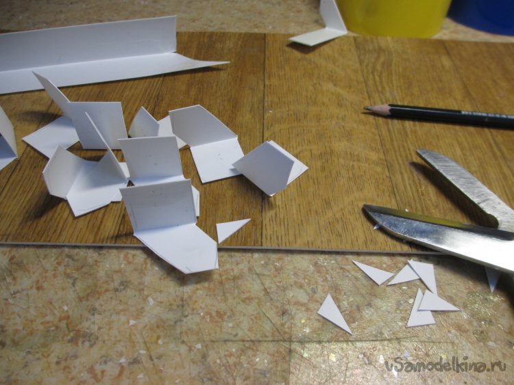 При помощи шаблона размечаю весь пластиковый уголок. Вообще мне ужен один, но запас карман не тяготит, он есть и пить не просит… и далее по тексту. По разметке режу пластик хорошими ножницами по металлу. После нарезки разъединяю заготовки.