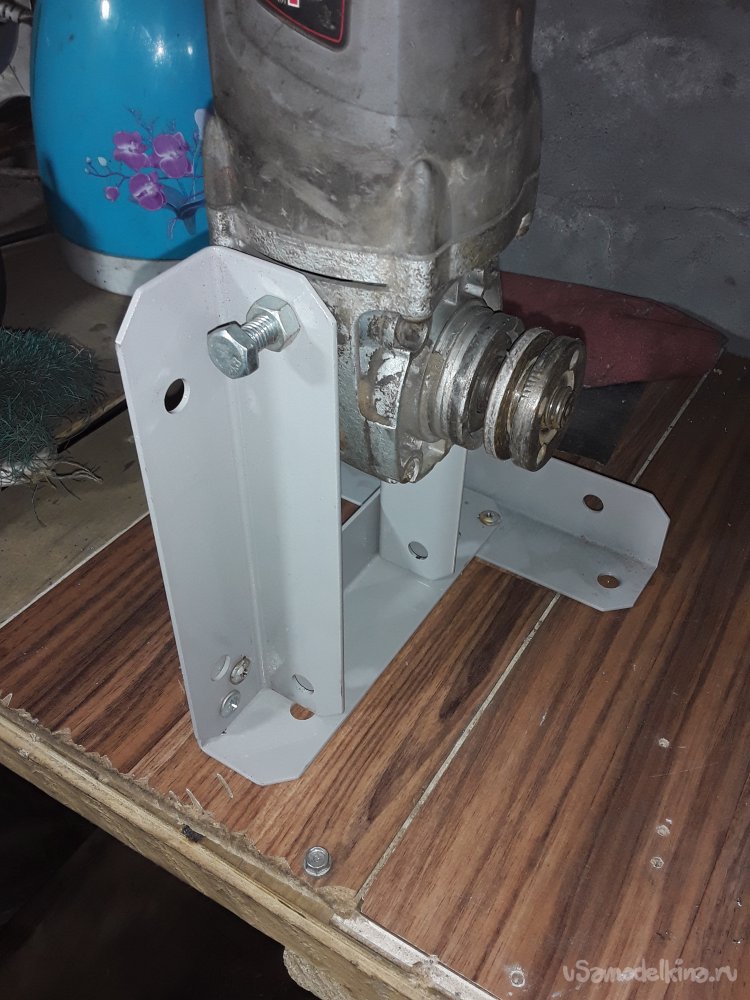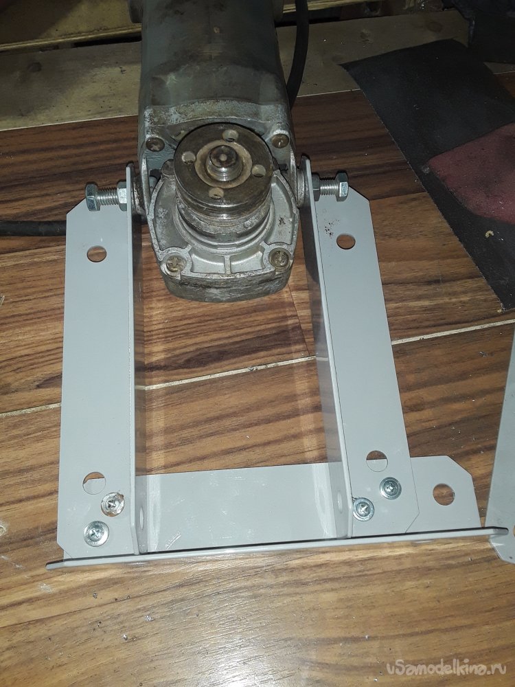 Перед сборкой взял 2 уголка и закрепил их на болты через отверстия для ручек и проверил все уголком чтобы при установке на стол диск относительно него стаял ровно под углом. Иначе вся конструкция будет кривая. Можно сделать из полос металла потолще так будет очень прочно, но у меня на данный момент такого нет собираю из того что нашел.