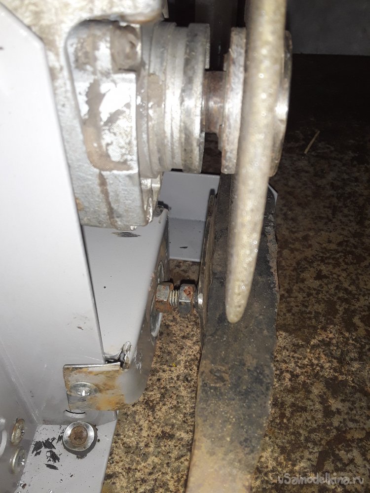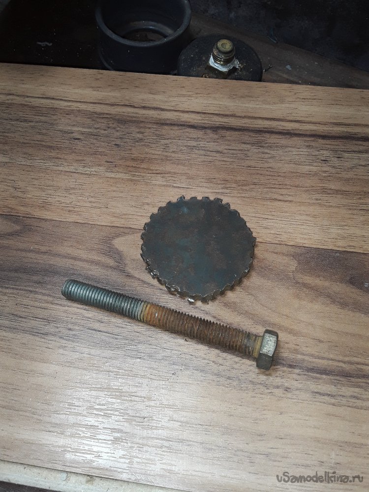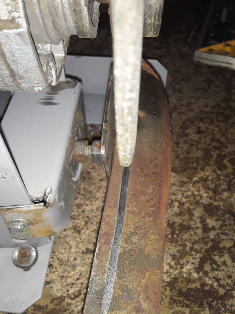 Для упорной площадки взял металл 2мм 5на5 см и приварил к нему болт и сделать вторую из 40мм шайбы для нарезки криволинейных долов. Для того чтобы изменить расстояние от обуха нужно просто немного открутить упор или закрутить, а для жёсткости законтрить иначе от вибрации упор будет шевелиться. Для крепления упора я взял кусок уголка, вымерил расстояние от станины сделал распил с одной стороны потом от края оставил ушко, загнул его для крепления к станине. Для регулировки по центру просверлил отверстие и приварил гайку. Попробовал, а упор неплотно крепится по этому я приварил еще одну гайку и поправил метчиком резьбу. На болт упора закрутил контр гайку и все фиксируется очень прочно так и оставляю. Получившеюся штуку выставляю с учетом того чтобы можно было ставить разные диски на болгарку и край отступа был до 3‐х см и все креплю, как и раньше. Получилось так что при установке 140мм отрезного диска нож упирается почти в нижний край упора, а при установках отрезного диска 125мм в центр. В основном нарезка дола происходит сначала отрезным потом шлифовальным 125мм.