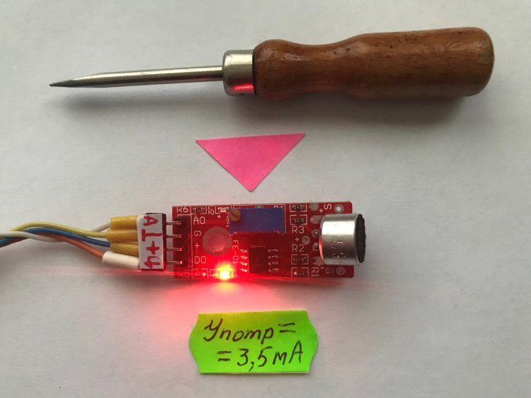 Главная отличительная особенность СПГ - в использовании малогабаритного (26х15х15 мм) модуля производства КНР - ДУЗ (датчика уровня звука). В интернет магазине MCU Store 30.10.2022 года автором статьи модуль под названием «Датчик уровня звука» был приобретён за 56 рублей. Дорого, но доставка «курьером до двери» за 7 дней. Ранее, в 2021 году, такие же модули мне в качестве подарка были высланы из «Алиэкспресс» в бандероли («мелком пакете») вместе с другими заказанными деталями. Это были 4 не разделённые печатные платы в полном сборе, которые перед использованием следовало разделить (аккуратно разломить). Вероятно, тогда в продаже они были в большом избытке и очень дёшевы, если высылались в качестве подарка (входного бонуса). Однако, на «Алиэкспресс» сроки доставки намного больше, а риск не получить заказанное, получить брак или крупный некомплект после предоплаты от недобросовестного продавца (например, Sun Xiongjian из Гонконга) вполне реален.