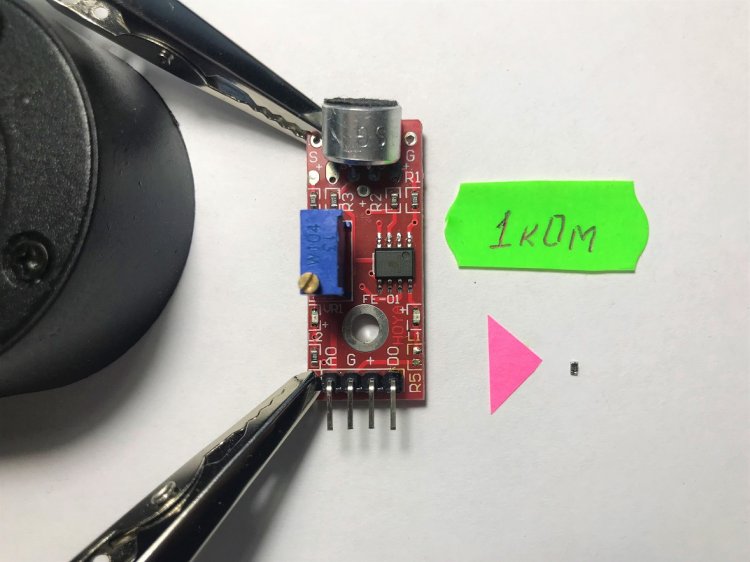 Датчик имеет цифровой (DO - digital out) и аналоговый (AO - analogue [ˈænəlɒg] out) выходы. Чувствительность цифрового выхода регулируется подстроечным резистором позволяя настроить порог срабатывания. Напряжение на аналоговом выходе пропорционально уровню громкости звука.