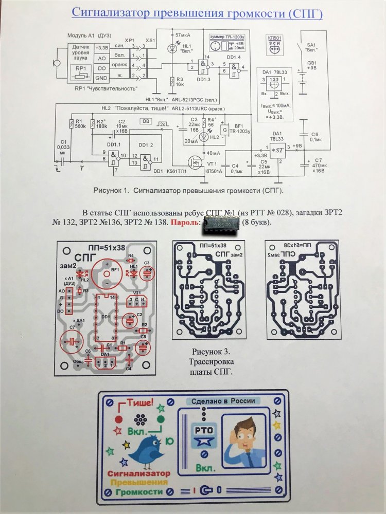 Разгадав загадки или ребус, следует ввести ответ в строку «Пароль» файла «SPG_4work». Тогда вы сможете, получить комплект КД для изготовления СПГ, и в качестве бонуса готовый к термопереносу (в масштабе = 1:1) отражённый рисунок трассировки печатной платы. Также, Вы сможете в открытом виде прочитать ответ к ребусу №1. Архив файла «SPG_4work» можно скачать здесь: