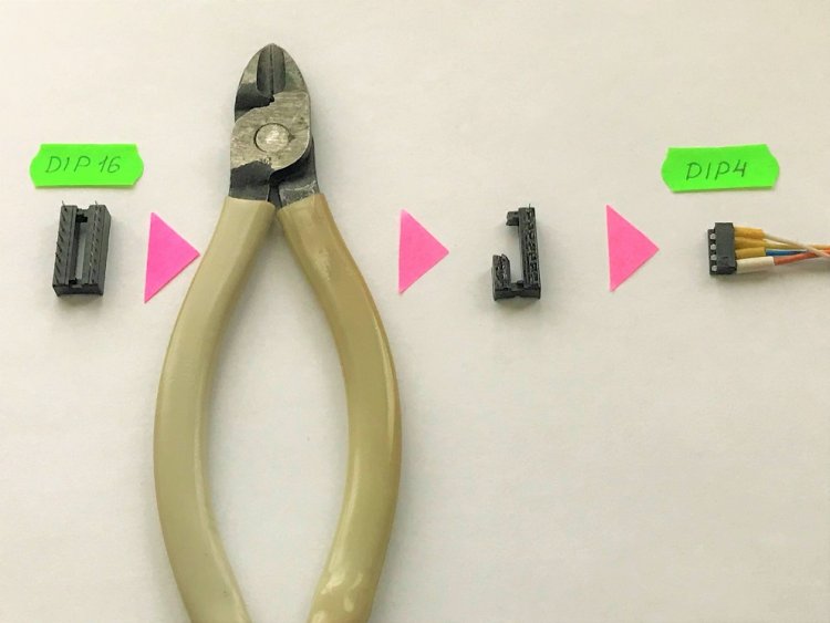 Гнёздную половинку 4-х контактного разъёма можно изготовить из «кроватки» для ИМС DIP14, DIP16, DIP18 и т. п. с шагом 2,5 мм, но лучше (заодно с модулем) заказать в том же Интернет-магазине MCU Store.