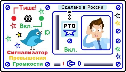 При превышении порогового уровня звукового воздействия на микрофон, включается красный светодиод HL2 «Тише!» и звучит активный зуммер BF1.