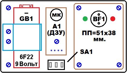 Составные части СПГ размещаются в корпусе – мыльнице размером 100 х 60 х 32 мм. в соответствии с планом расположения (см. рисунок 5).