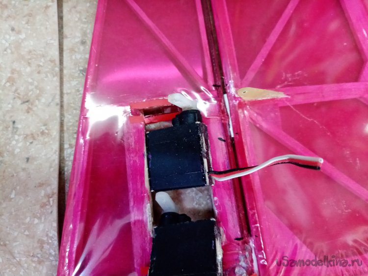 Решил провести тяги управления без боуденов. При помощи угольных трубок. Проверю этот вариант. Склеиваю слегка сервоприводы циакрином. В таком положении буду монтировать их в фюзеляж.