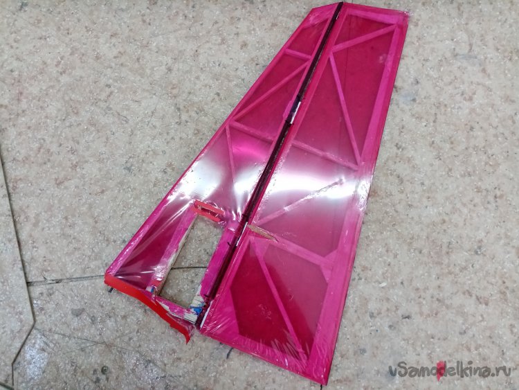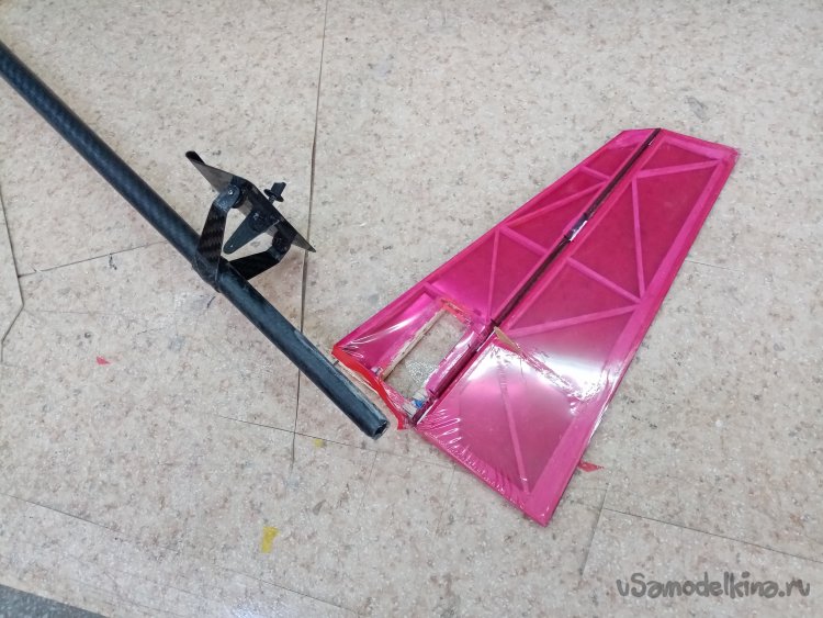 Наличие сервоприводов в конструкции предполагает её усиление и как следствие еще увеличение веса. Можно переставить сервоприводы в фюзеляж. Изготовить более легкий руль направления. Тяги управления от сервоприводов протащит в хвостик в боуденах. Планирую такой перестановкой добиться намеченного уменьшения веса модели.