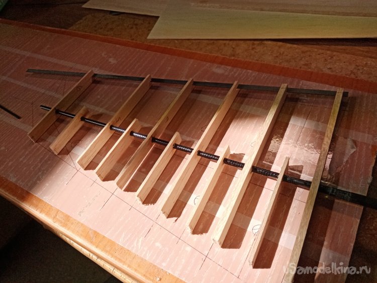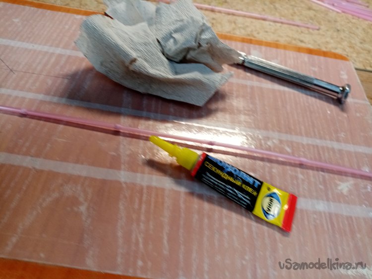 Для усиления конструкции проклеиваю набор нервюр при помощи нитки ровинга по кругу. Для этой процедуры использую циакрин.