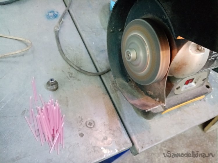 Затем один из концов трубочки немного стачиваю на шлифовальном круге на конус.