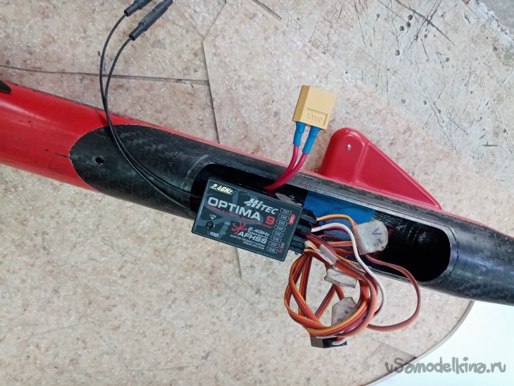 Поэтому было приято решение модернизировать, хорошо летающий планер, под новые правила. Снимаем мощьный мотор с большим винтом, и как следствие регулятор. Можно убрать аккумулятор большой емкости. Взамен получаю облегчение планера примерно в 180 гр. Это достаточно большая величина. Возникает проблема центровки. Её нужно как-то решать. Изначально в конструкции был предусмотрен руль направления, с установленными в его корпусе парочкой хайтековских сервоприводов. Это почти 20 гр веса, на большом плече хвостовой балки.
