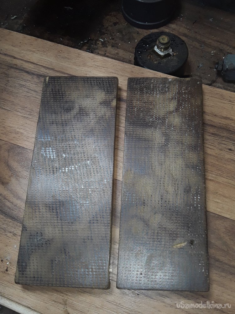 Ну вот и все очень нужная вещь для работы с клинком готова получилось все ровно и прочно. Я не думал что работать с текстолитом так приятно не считая момента распила. Материал очень прочный и при своей толщине весьма легкие по сравнению с металлом. В общем материал мне понравился к тому же по прочности все устраивает. При работе вообще не замечаешь тяжкости как при работе с металлическим бульдозером. После долгих испытаний все разобрал и отшлифовал для выравнивания поверхности и собрал обратно, а на место прикосновения к поверхности площадки гриндера приклеил кусок фторопласта для того чтобы не испортить поверхность все таки метал прочнее текстолита. В целом пока нечего дорабатывать кроме ручек все получилось ровно, а работать стало проще. Следующий этап для меня это переделать столик на гриндере так как старый был сделан под бульдозер меньшего размера, а сейчас при установке край ножа упирается в верхний ролик и работать пока немного не отпущу столик на 5см вниз чтобы край острия упирался в центр упора и тогда все будет как надо. Ну вот моя статья подошла к концу спасибо тому кто прочитал до конца желаю мира и добра вашему дому. До новых встреч в гостях у Самоделкина.