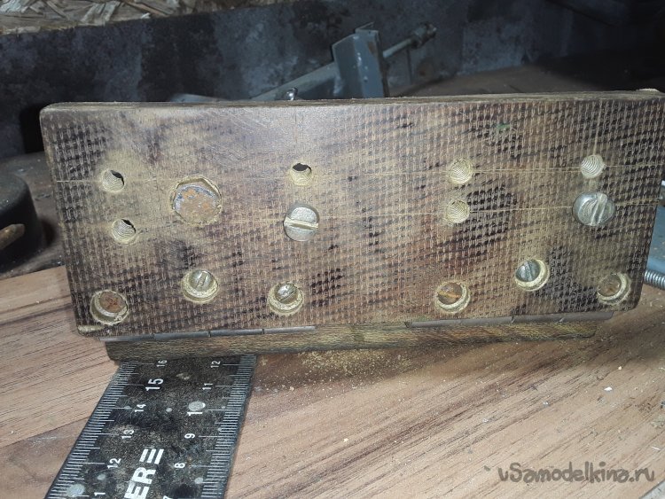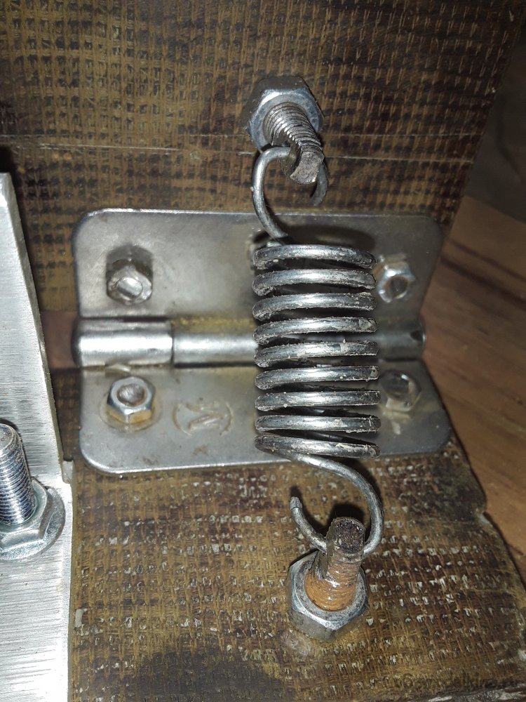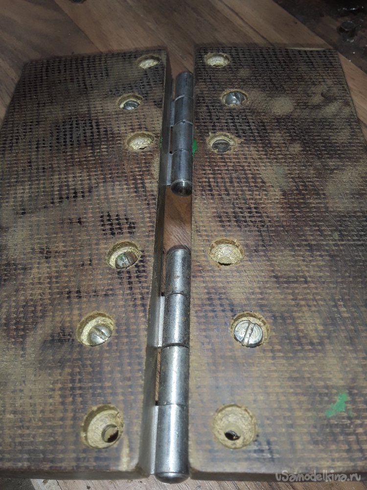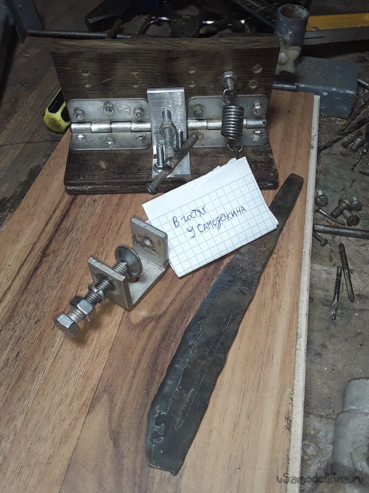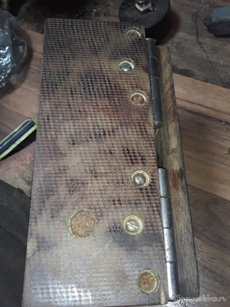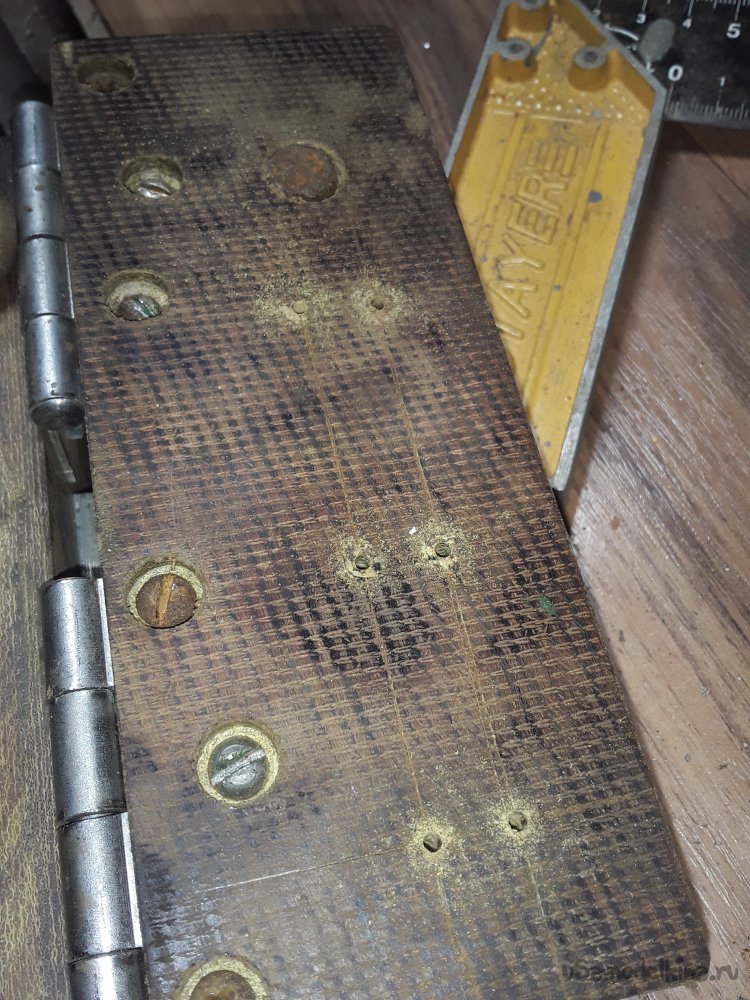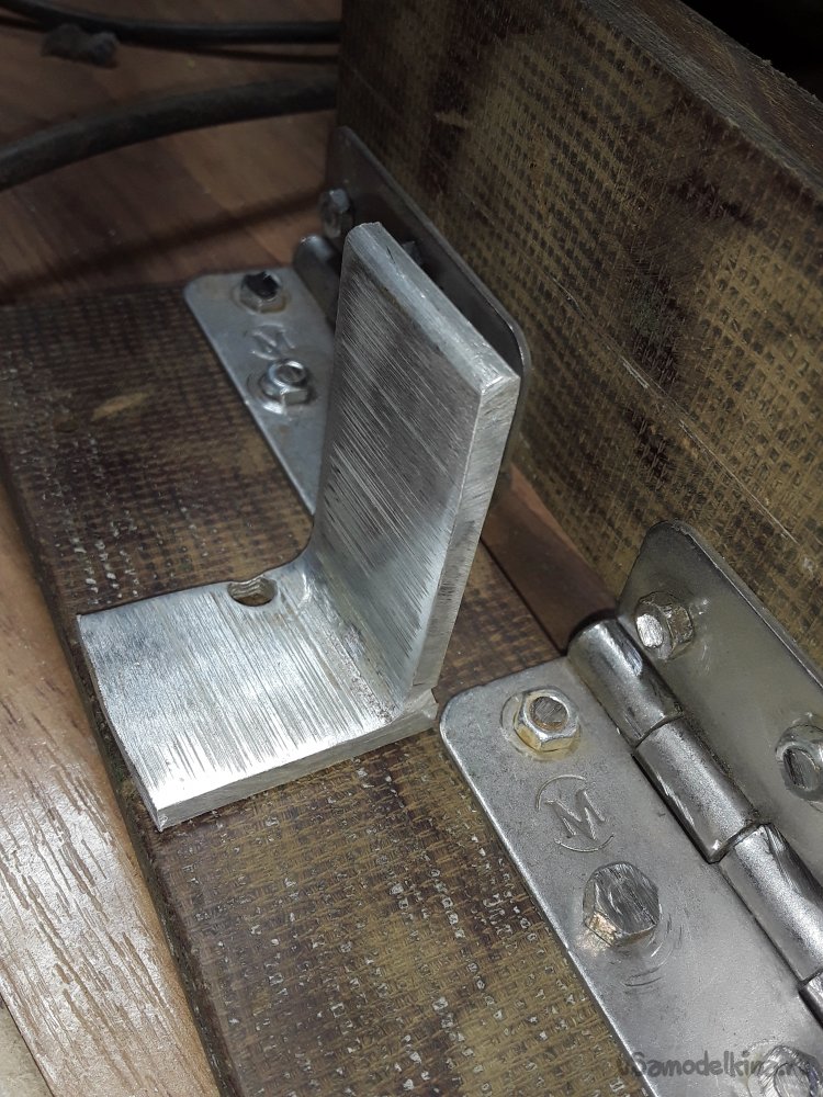 Из листа текстолита вырезаю 2 куска 7см на 15см режу болгаркой простым отрезным диском при резке обязательно нужно надеть респиратор и очки. Так как этот материал вредный тем более когда пилишь сильно летит пыль. Отрезав нужные куски выставляю все ровно под углом и положив сверху два навеса делаю разметку.Навесы брать лучше много петлевые из толстого металла иначе сделать прочное регулирование угла не получится. Ведь при малейшем смещении угол одной из сторон будет не ровным. Перед установкой немного подбил петли чтобы туговато работали и смазал маслом. Почему я взял два, а не один большой потому что на одном навесе все равно будет люфт а, когда остановлено 2 то конструкция будет гораздо прочнее.Для крепления навесов и всего что крепится обратиться к большой жестяной банки времен ссср. В банке находятся драгоценности, а это разной длинны болты и гайки всякие шайбы и железки это все мне досталось от деда, а ему от его деда в общем из поколения в поколения так говорится наследство. С большей легкостью я нашел нужные мне детали высокого качества и количество. Я считаю что такие вещи нужно беречь так ка больше не делают как в старые добрые времена китайцы. После разметки просверливаю тонким сверлом все отверстия, а затем 2‑х мм сверлом уже под болты. Для того чтобы шляпки болтов не мешались сверлом на 8мм немного сверлю на глубину 2мм. Перед установкой шлифую на ровной поверхности все плоскость чтобы они были идеально ровные. Далее наворачиваю болты, и затягиваю гайки, а все что не нужно отрезаю болгаркой и поправляю напильником.