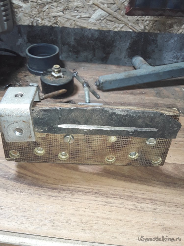 Здравствуйте уважаемые друзья сегодняшняя статья, как всегда, пойдет на тему ножидела. Для того чтобы клинок был красивым он должен не только блестеть, но и самое важное это то как выведены спуски. Для этих целей используются масса видов приспособлений разных видов и форм. Самое распространенное это приспособление под названием бульдозер. Есть два важных условия красивых и ровных спусков это правильно настроенный гриндер и правильно собранный бульдозер. Как то давно собирал себе такое приспособление из Толстого металла и к сожалению при долгой работе очень напрягает руки. И именно по этому я решил собрать из чего-то легкого, изначально хотел собирать из алюминия, но так и не нашел подходящей толщины материал. Долго думал и на глаза попался кусок текстолита толщиной 1см как раз то что мне нужно. Текстолит это очень прочный композитный материал который очень износостойкий, а самое главное легкий. Перед изготовлением просверлил отверстие и нарезал резьбу, чтобы проверить прочность материала, оказалось что текстолит очень хорошо держет резьбу так что успокоился, пошел размечать и собирать.