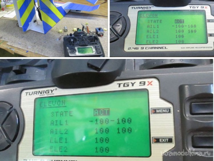 Затем настал черед настройки управления элевонами и рулем поворота.