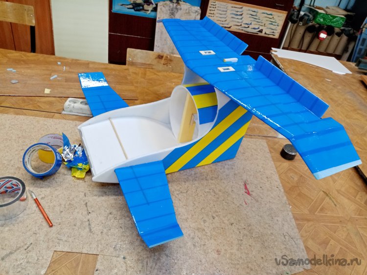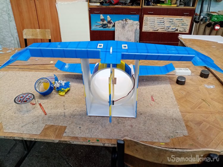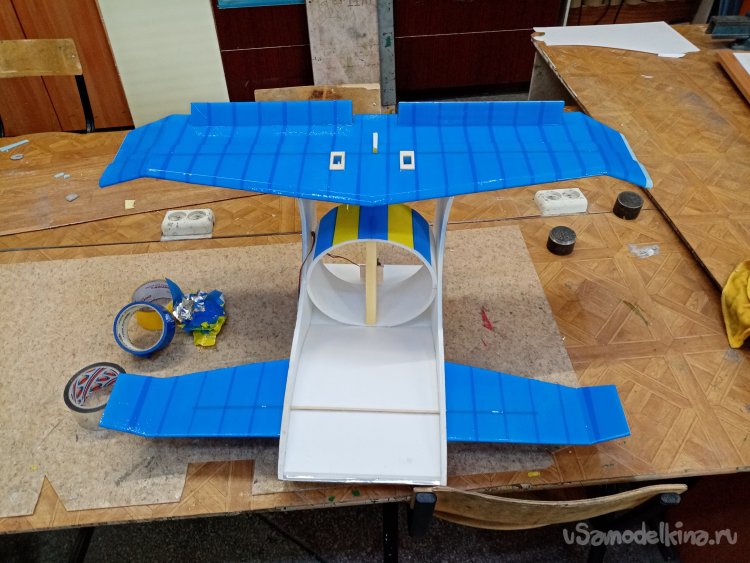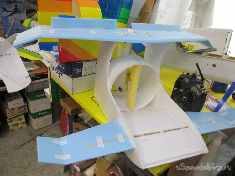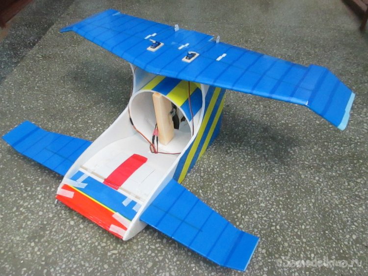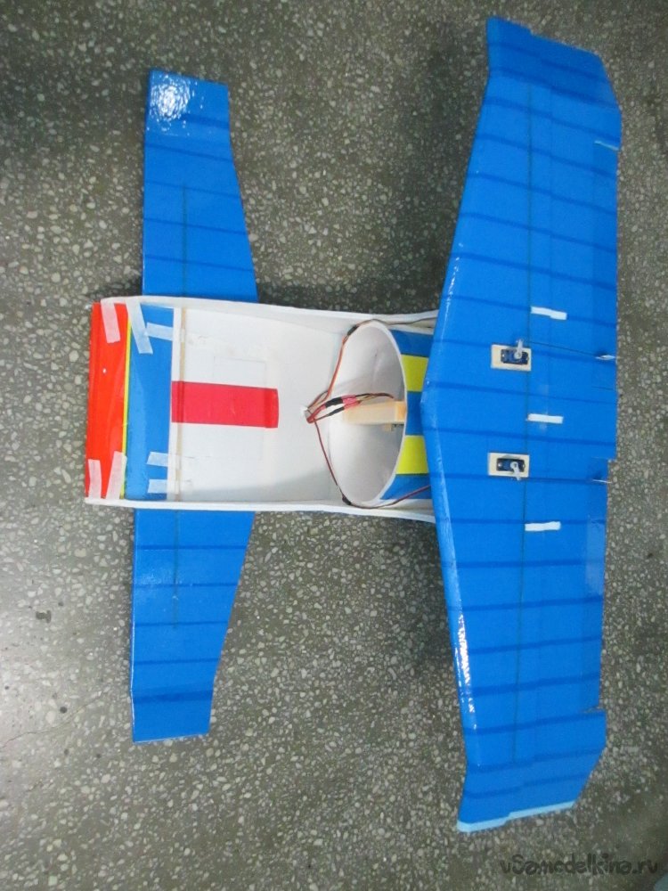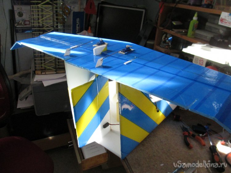 Верхнее крыло с установленными элементами управления приклеил более прочно на место.