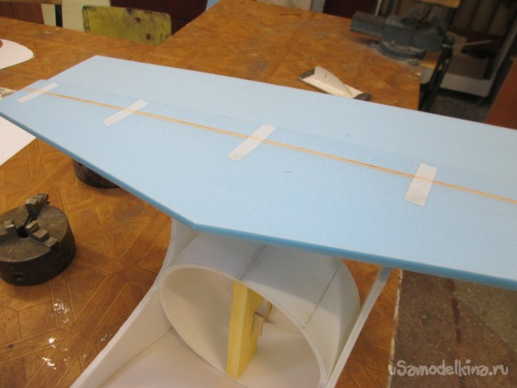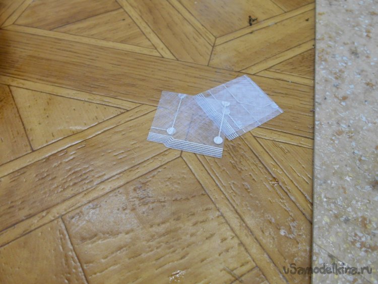 Навешиваю рулевые поверхности на прозрачный упаковочный скотч. С двух сторон.
