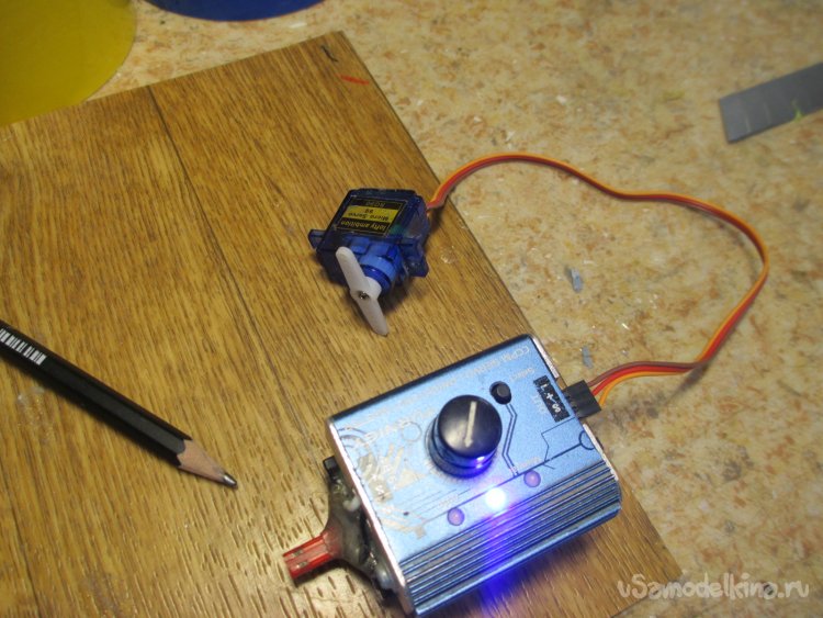 При помощи сервотестера проверяю сервоприводы мотор. Все работает и двигается в нужно направлении.