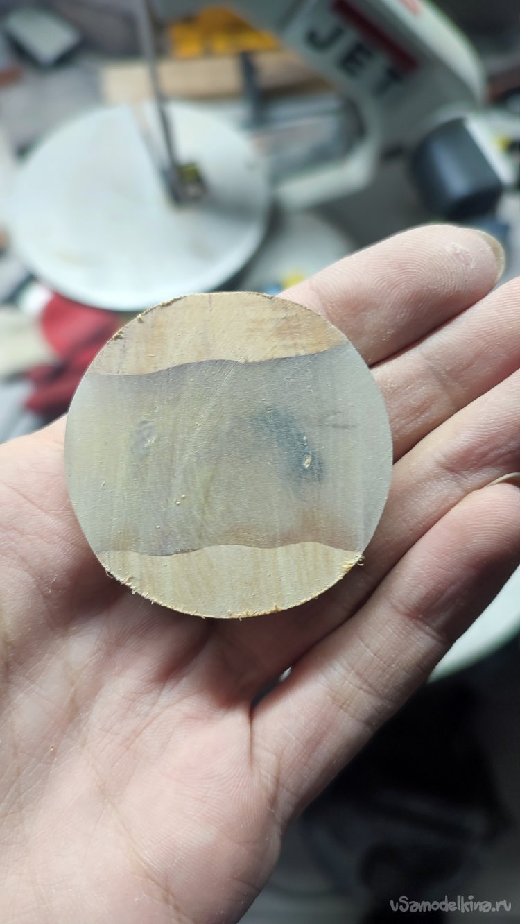 Далее я выровнял поверхности на шлифовальном станке, чтобы разметить форму амулета, а именно круг. Ну и чтобы сформовать этот круг.