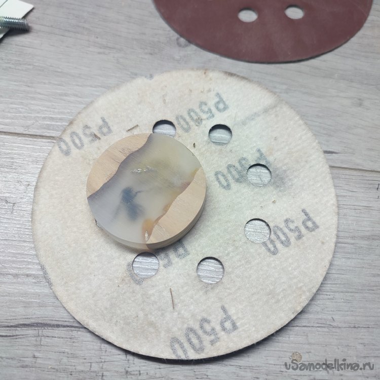 Далее, чтобы не заморачиваться больше с ручной шлифовкой, я отшлифовал амулет на станке. Начал с 500 зернистости.