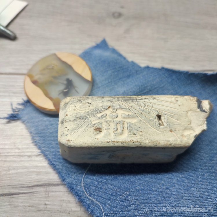 Поскольку высокоабразивные наждачки у меня остались дома, я решил попробовать отполировать изделие сразу после 1000 зерна. Как ни странно – получилось неплохо. Для начала я взял грубую полировальную пасту, чтобы финишно «отшлифовать» изделие. Полирую я джинсовой тканью, она как-то лучше полирует. И шелк для финишной полировки хорошо работает.