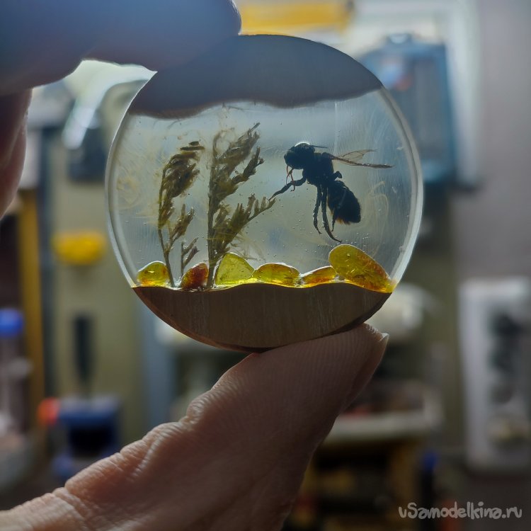 Амулеты во всех их проявлениях всегда в принципе существовали в нашем мире. И вот, мне заказали изготовить такой амулет, причем в пчелино-медовой тематике, так как заказчик – пасечник. А у меня как раз еще летом на чердаке померла пчела, которую я все хотел залить эпоксидкой, да не знал, во что. И янтарь чет завалялся...... да и с эпоксидкой давно не работал.....