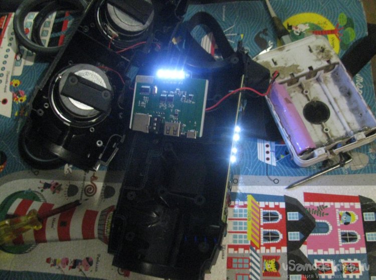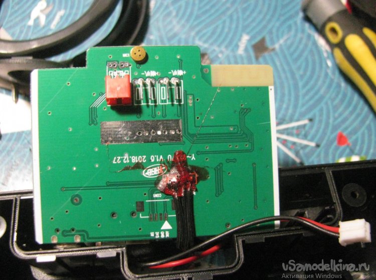 Гнездо зарядки оказалось совсем раздолбаным, а заменить его нечем. Временно для зарядки 5В припаял два провода. Заряд идет, индикатор светится. Рядом еще есть индикаторы, которые показывают наверно уровень зарядки.