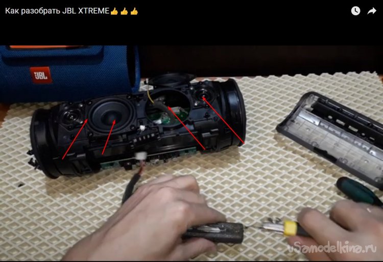 Внутри видим всего два динамика вместо 4, как в оригинальной JBL EXTREME