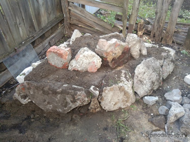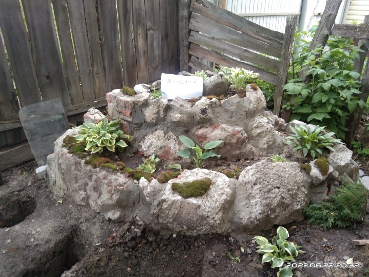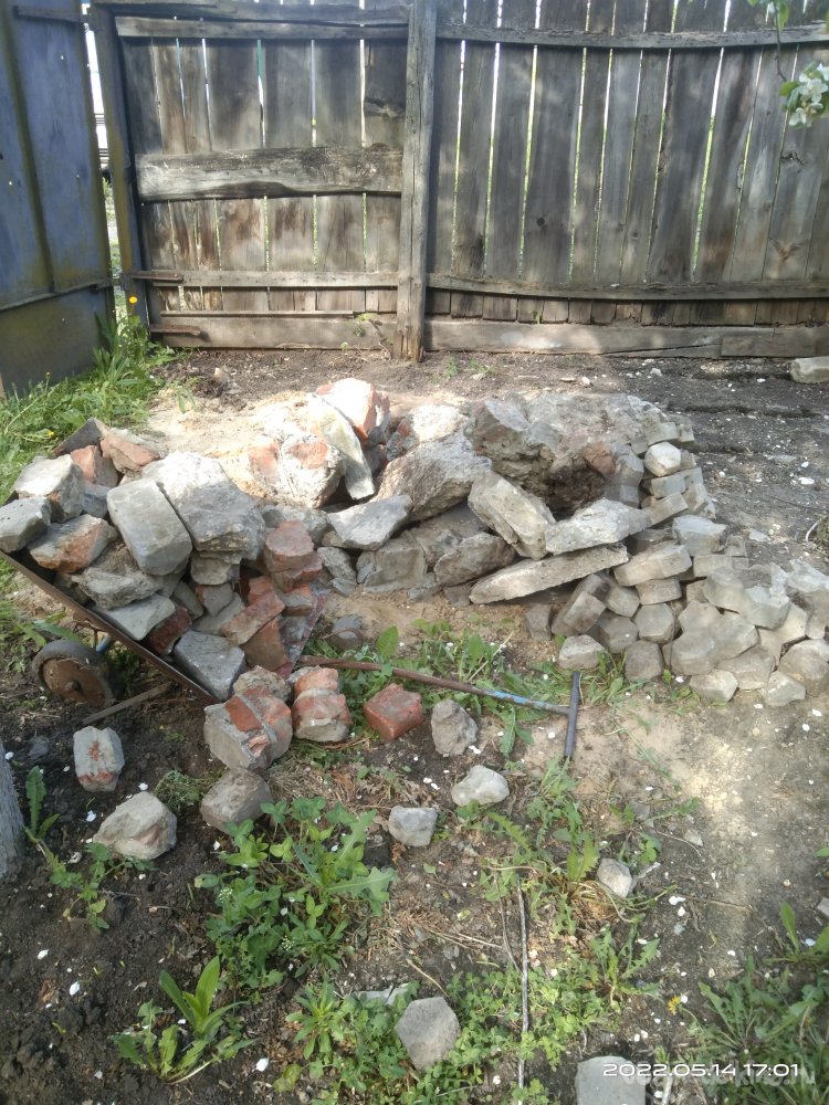 В данной статье хочу поделиться с вами как сделать альпийскую горку, ну, или нечто на нее похожее, из совершенно неподходящих для этого предметов. Этими предметами для меня стал строительный мусор, которым засыпали дороги на наших улицах. Как обычно, все то, что не слишком тяжелое, было засыпано и разровнено по дороге, а то, что большое и неудобное, совместными силами было перекинуто на обочину и там брошено. Вот из этого неликвидного материала я и решил собрать горку. Конечно, это скорее не альпийская горка, а трехъярусная площадка, но тем не менее пусть будет горкой. Взяв тачку начал возить кирпичный бой, обломки плит и другие каменюки. Короче все то, что смог самостоятельно погрузить в тачанку. Набрал некоторое количество строительного материала приступил к сборке горки.