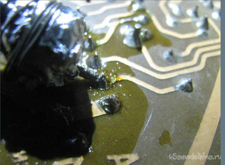 Вырезаем основу из текстолита, теперь к ней можно прикрутить нагревательный элемент с жалом. У меня была нихромовая проволочка, ей и прикрутил.
