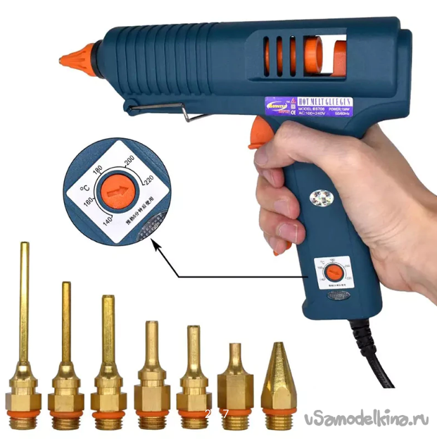 Корпус клеевого пистолета изготовлен из высокотемпературного изоляционного пластика.