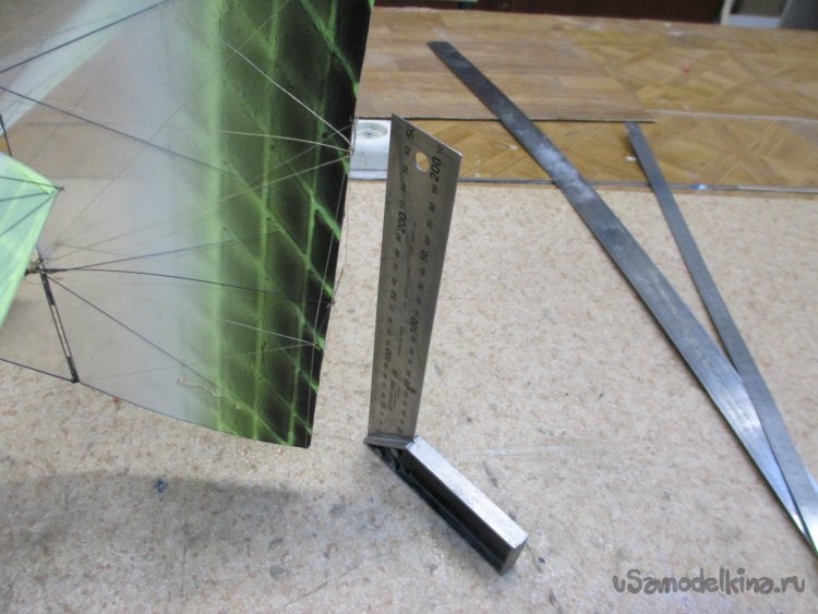 При помощи металлического угольника начинаю снимать размеры. Прохожу по всем выступающим частям самолетика.