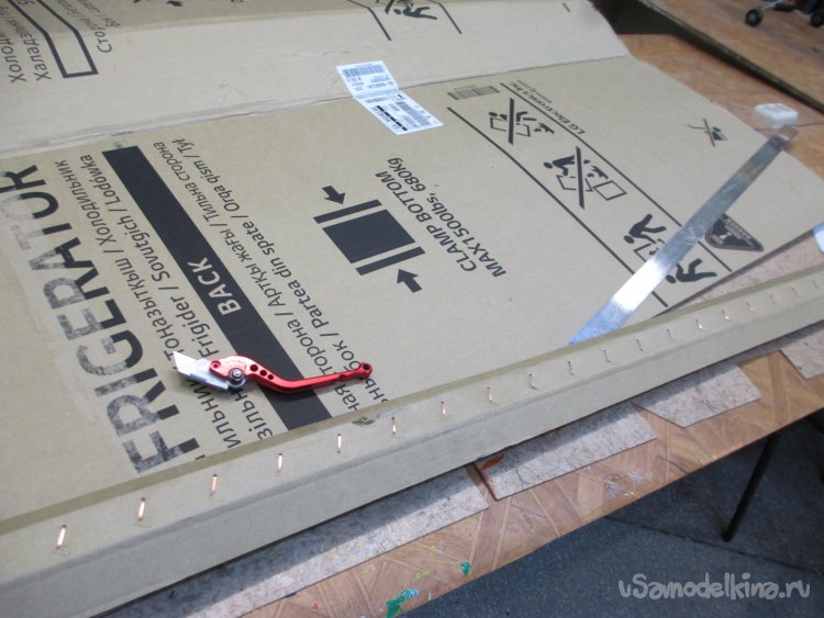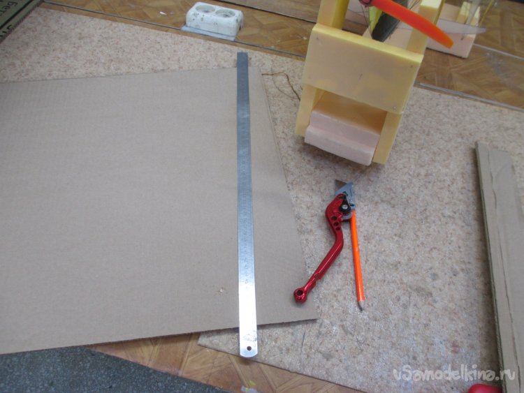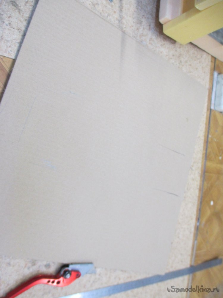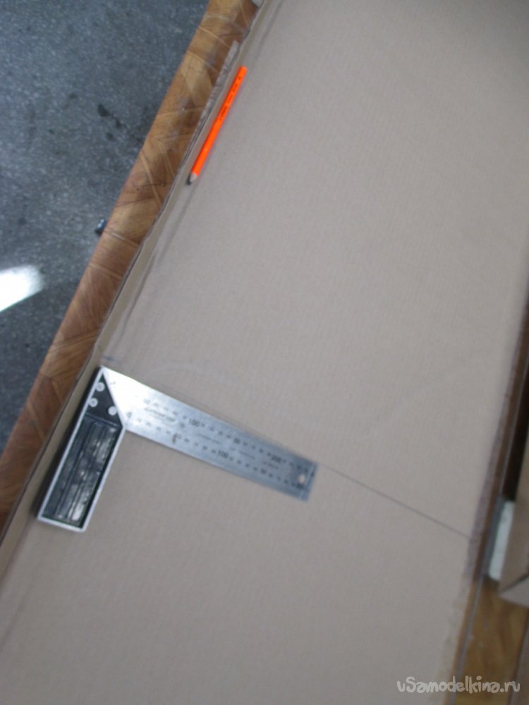При помощи метровой металлической линейки и карандаша начинаю разметку картона.