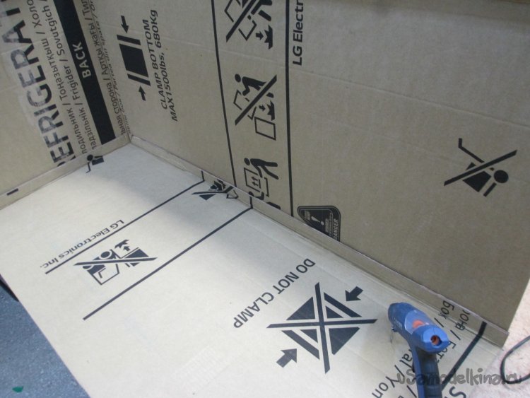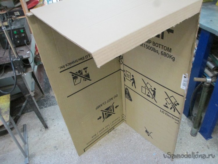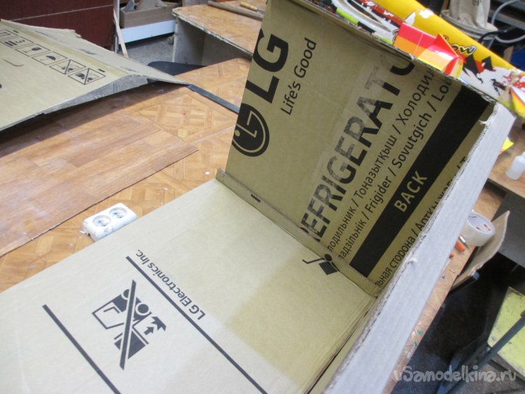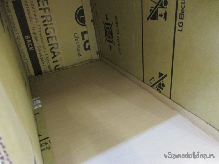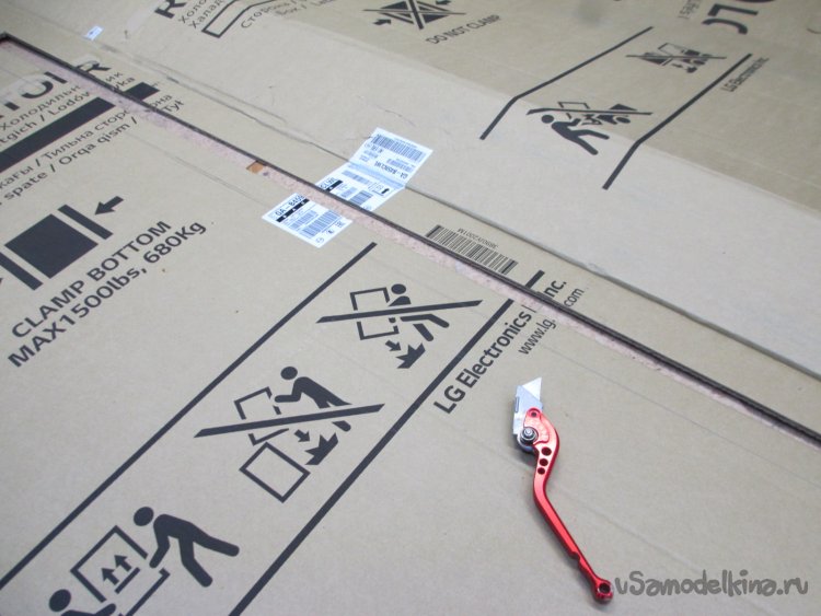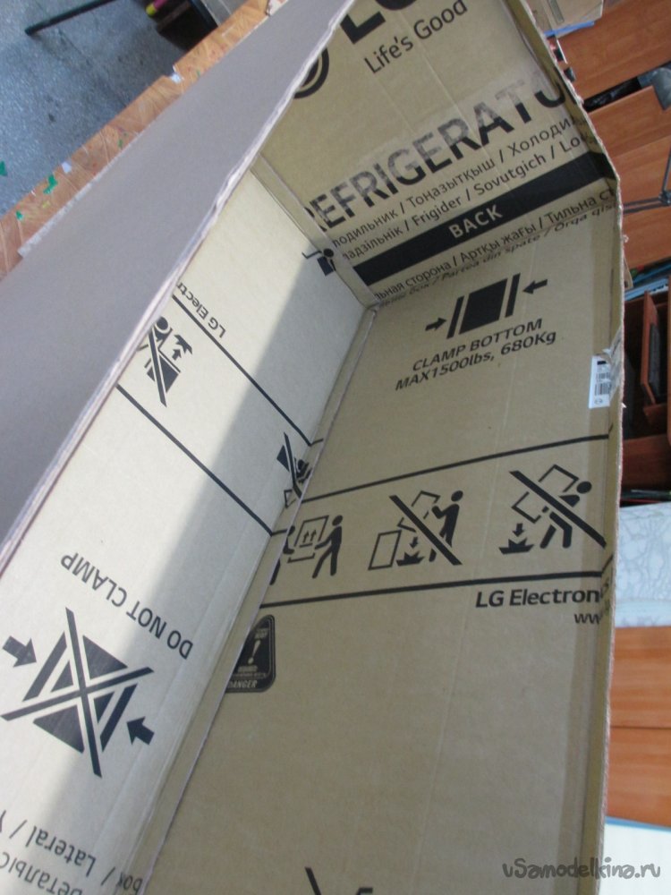 После составления карты размеров начинаю аккуратно разбирать коробочку от холодильника. LG однако. Некоторые совершенно ненужные части просто отрезаю.