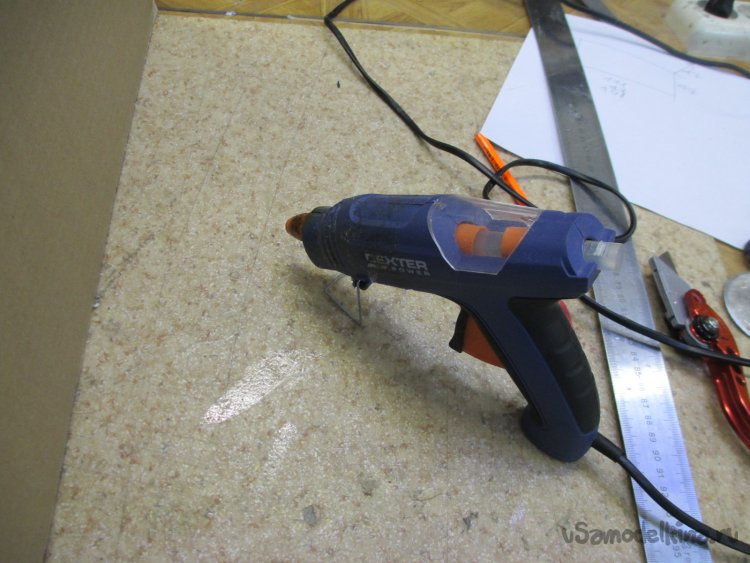 Начинаю склейку конструкции. Процедура достаточно простая, но есть нюансы. Поскольку клеить буду термопистолетом. Есть вероятность остывания клеевой полосы достаточной протяженности. В этом варианте подошел бы пистолет с регулировкой температуры.